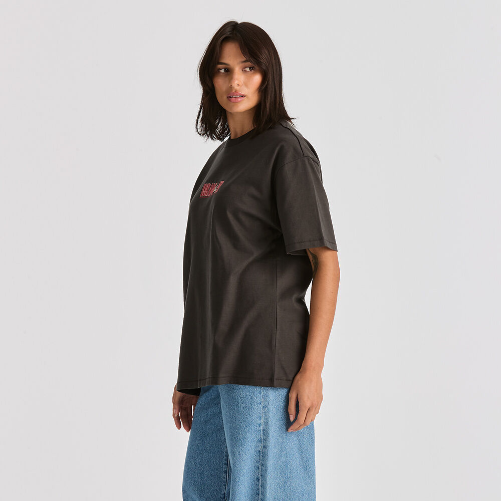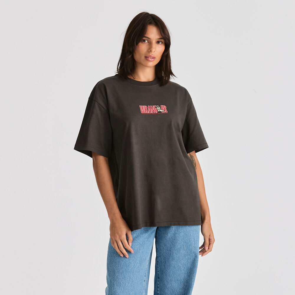 The Boot Scootin Slouch Tee is a baggy, oversized fitting tee inspired by a vintage band tee. Crafted in a heavy weight, recycled cotton jersey. Featuring embroidered and printed artwork across the front.