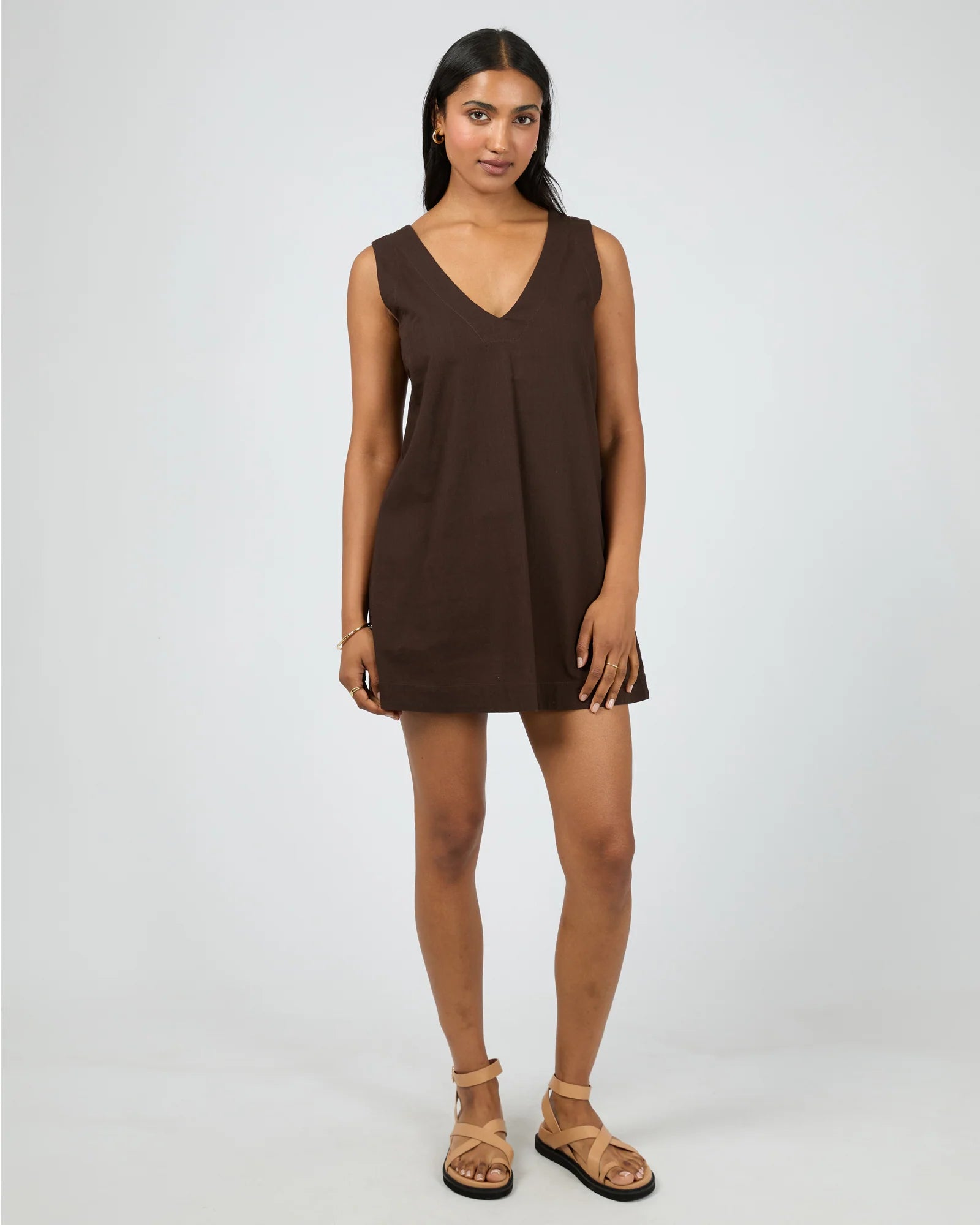 Inject earthy elegance into your wardrobe with the Essential Mini Dress in brown. Designed in 100% cotton and fully lined for extra comfort, this minimalist piece features internal facings and wide hems with clean topstitching for a structured finish. Pair it with boots or sandals for a modern, effortless outfit that carries you through every season..
