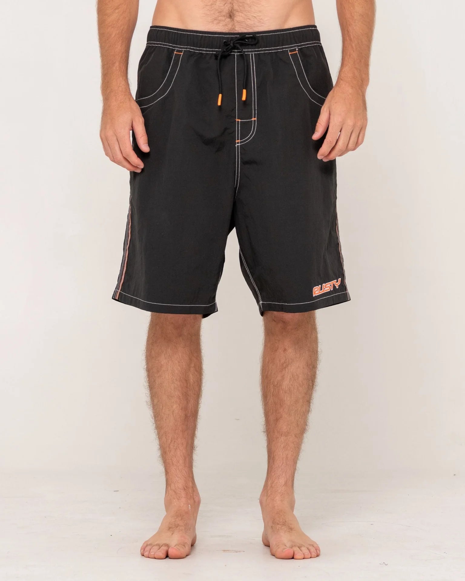 Baggy Fit Elastic Waist Boardshort With Contrast Stitch Tri-coloured Taping And A 22" Outseam. 100% Nylon Technical Fabric