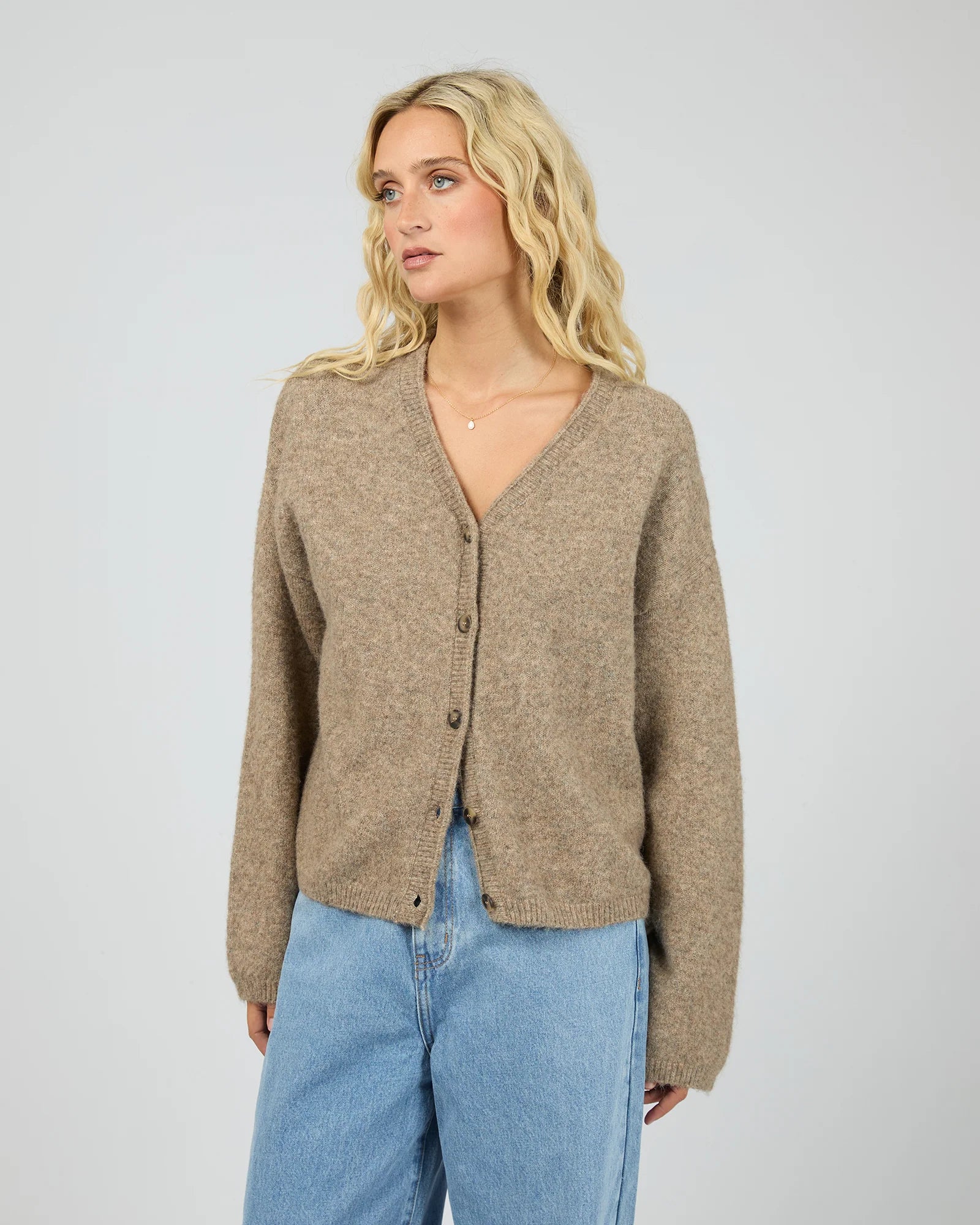 A considered essential, the Nova Cardigan in Mocha is a timeless layering essential with a relaxed, easy silhouette. Crafted from a soft, textured knit made with recycled polyester, it offers warmth and comfort without feeling heavy. Functional front buttons allow for versatile styling, whether worn buttoned up as a top or layered open over basics. The timeless colourway makes it endlessly wearable, pairing effortlessly with denim, tailored trousers, or dresses for everyday, season-spanning style.