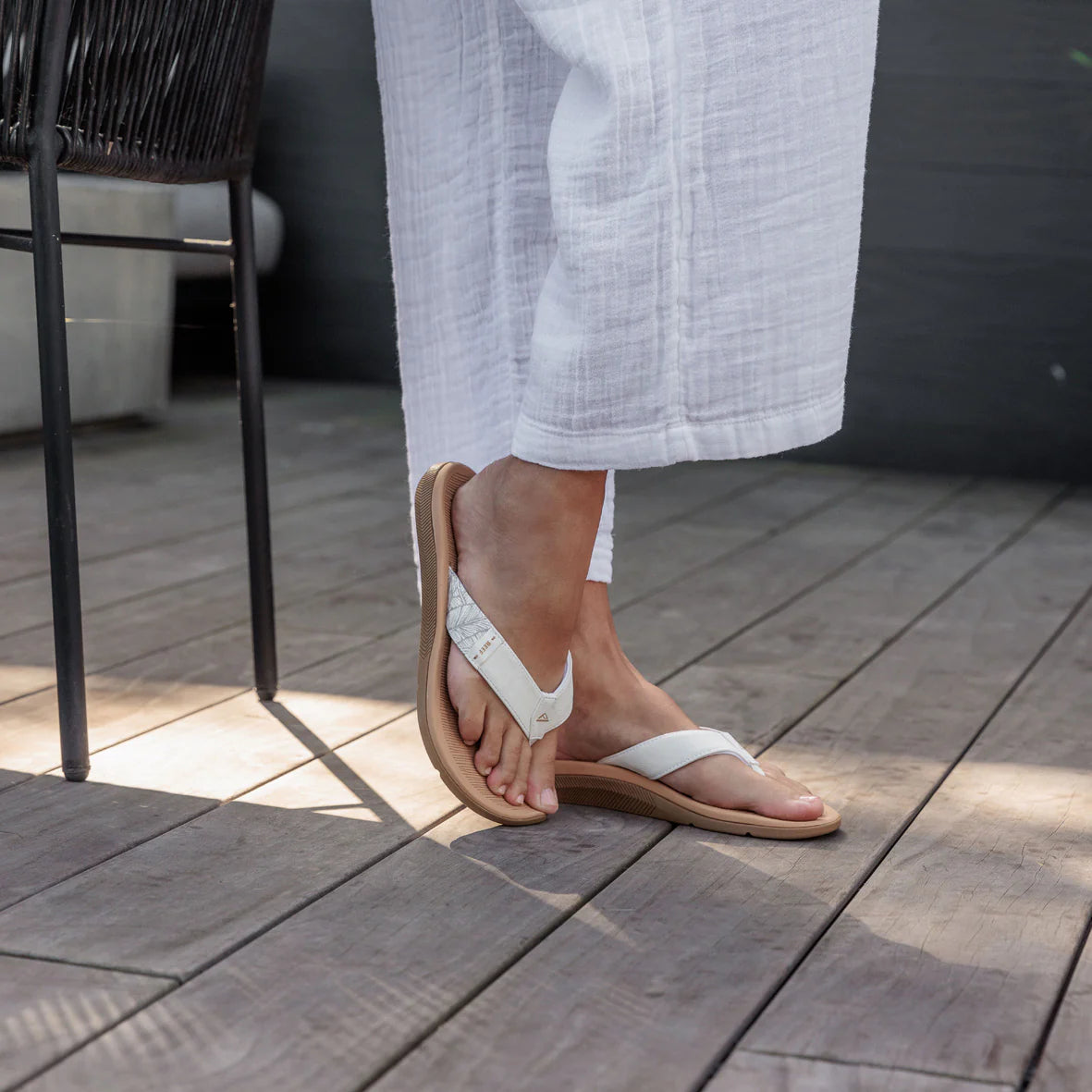 The Santa Ana makes you feel good just saying its name. And it looks even better - note the palm frond-inspired side wall. Right? But most of all, slip into it and feel the cushiony softness with high arch support, a padded vegan leather strap, and bamboo-inspired texture under foot for a no-slip grip. You get all the feels with the water-friendly Santa Ana.