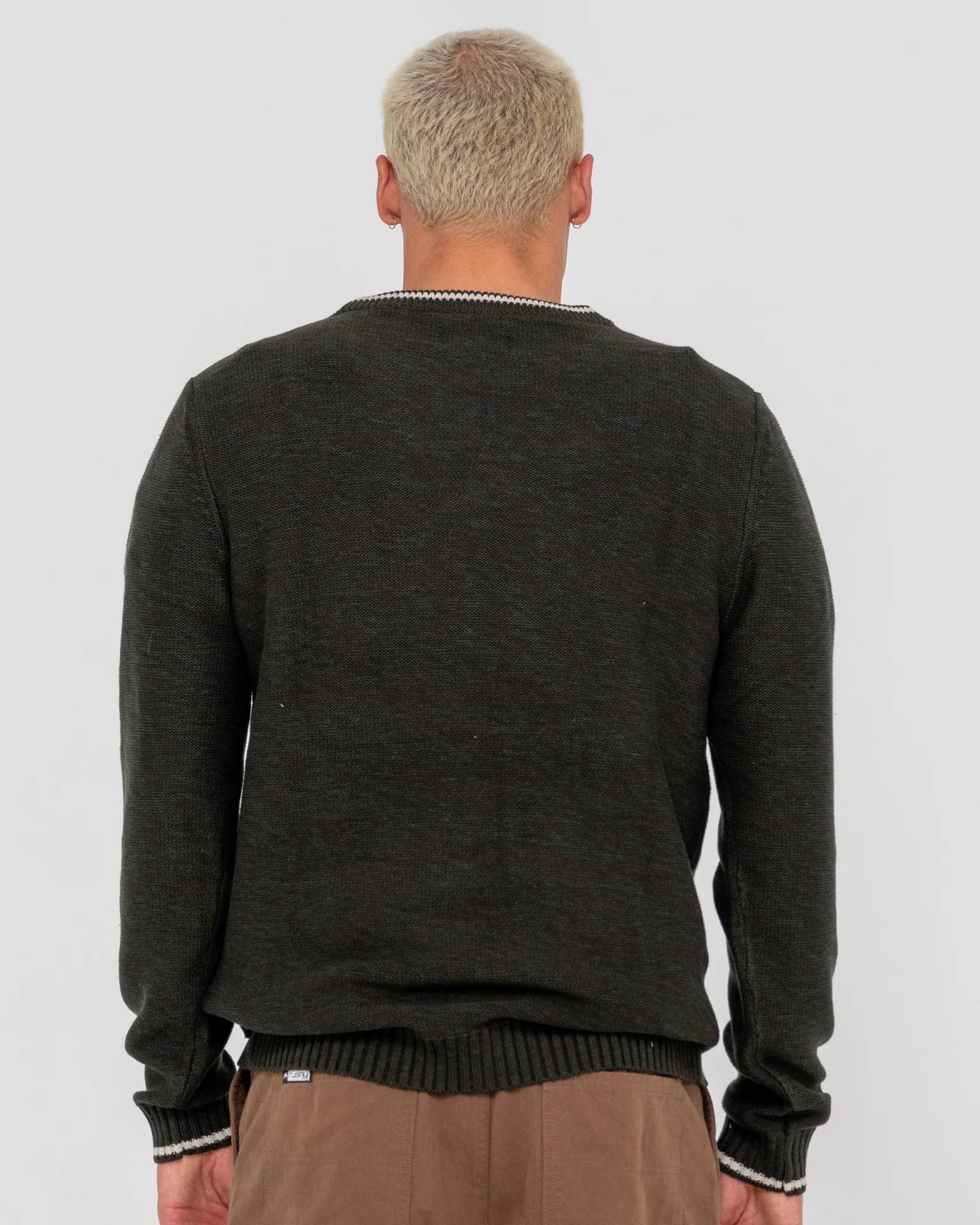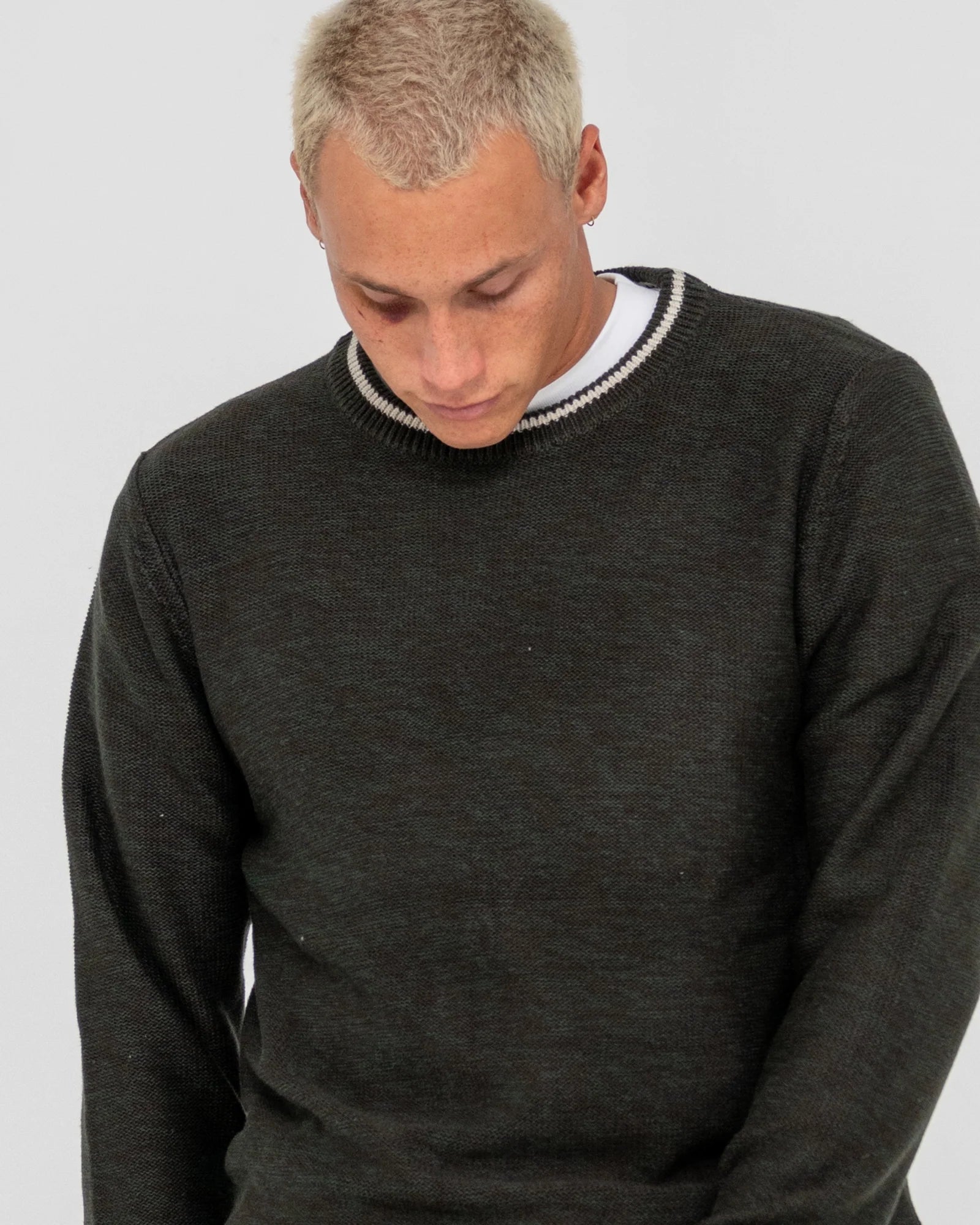 Og Fit Crew Neck Knit With Rusty Exterior Patch And Tipping. 55% Acrylic 45% Cotton